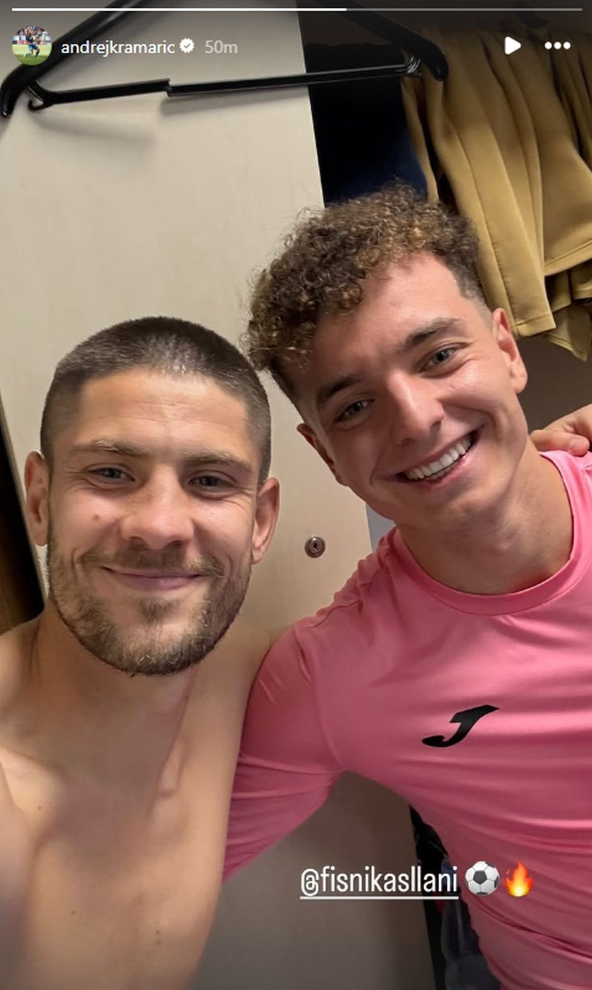 Kramarić je nakon meča u svlačionici napravio selfie sa Asllanijem i to je objavio na svom storyju na Instagramu.